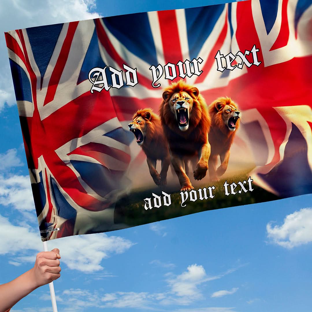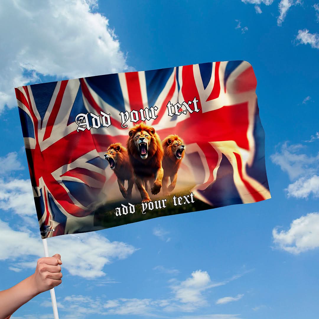 3 Lions Union Jack Flag with sleeve - Add Text - 4 Sizes!