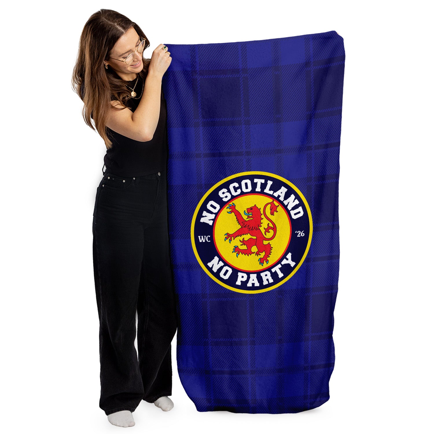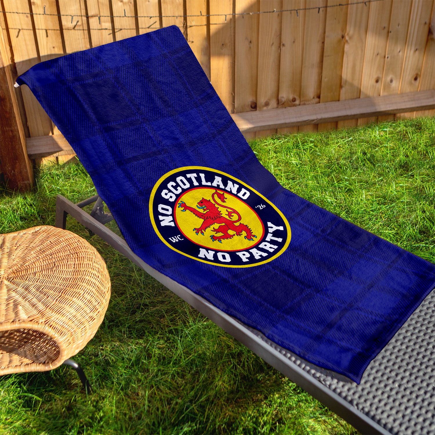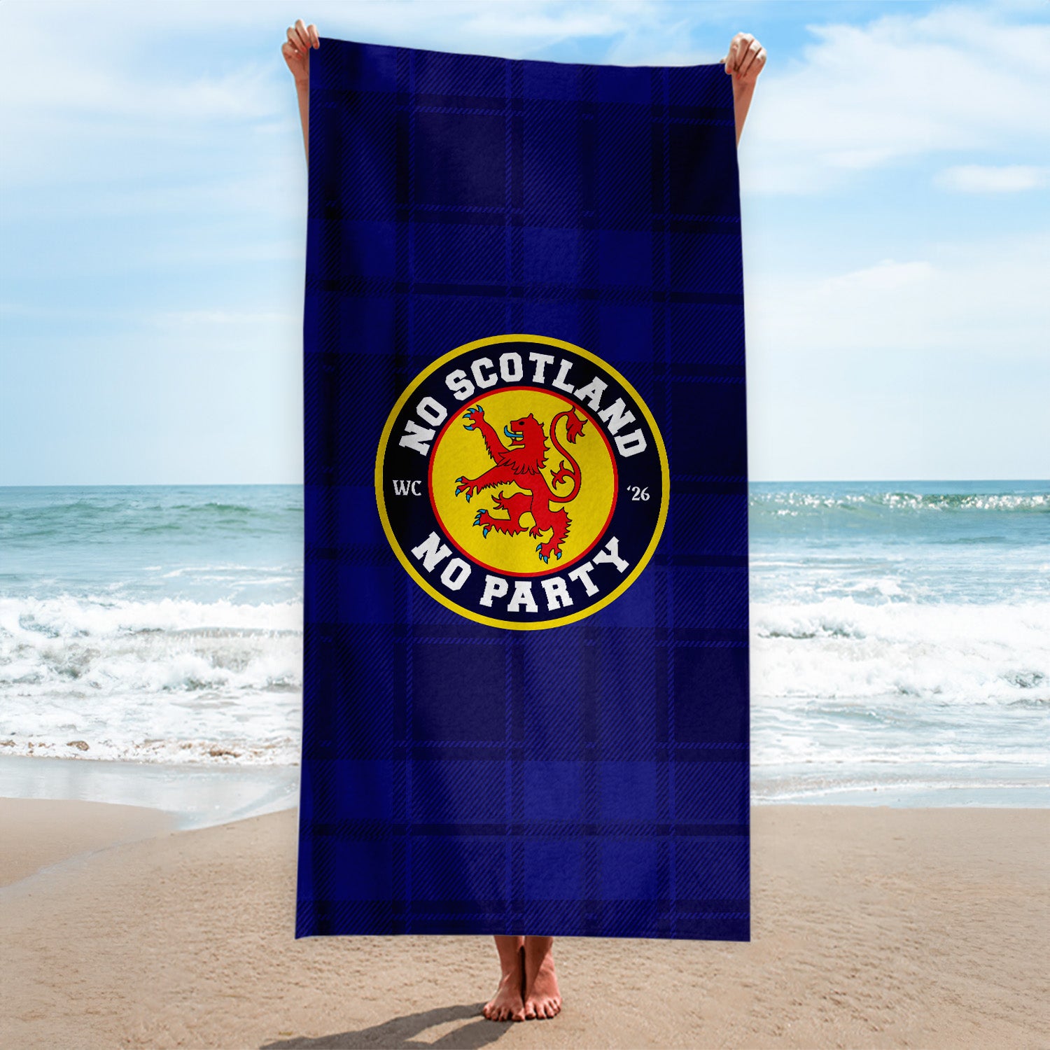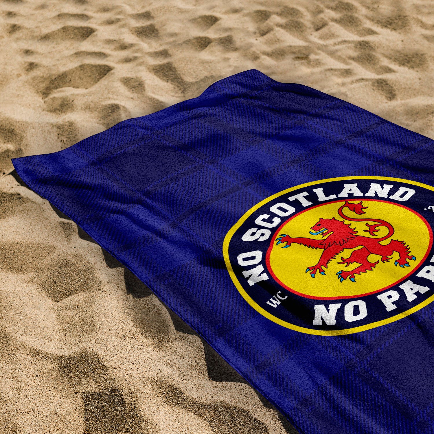 No Scotland No Party - Blue Tartan - Beach Towel - Microfibre Retro Beach Towel - 150cm x 75cm