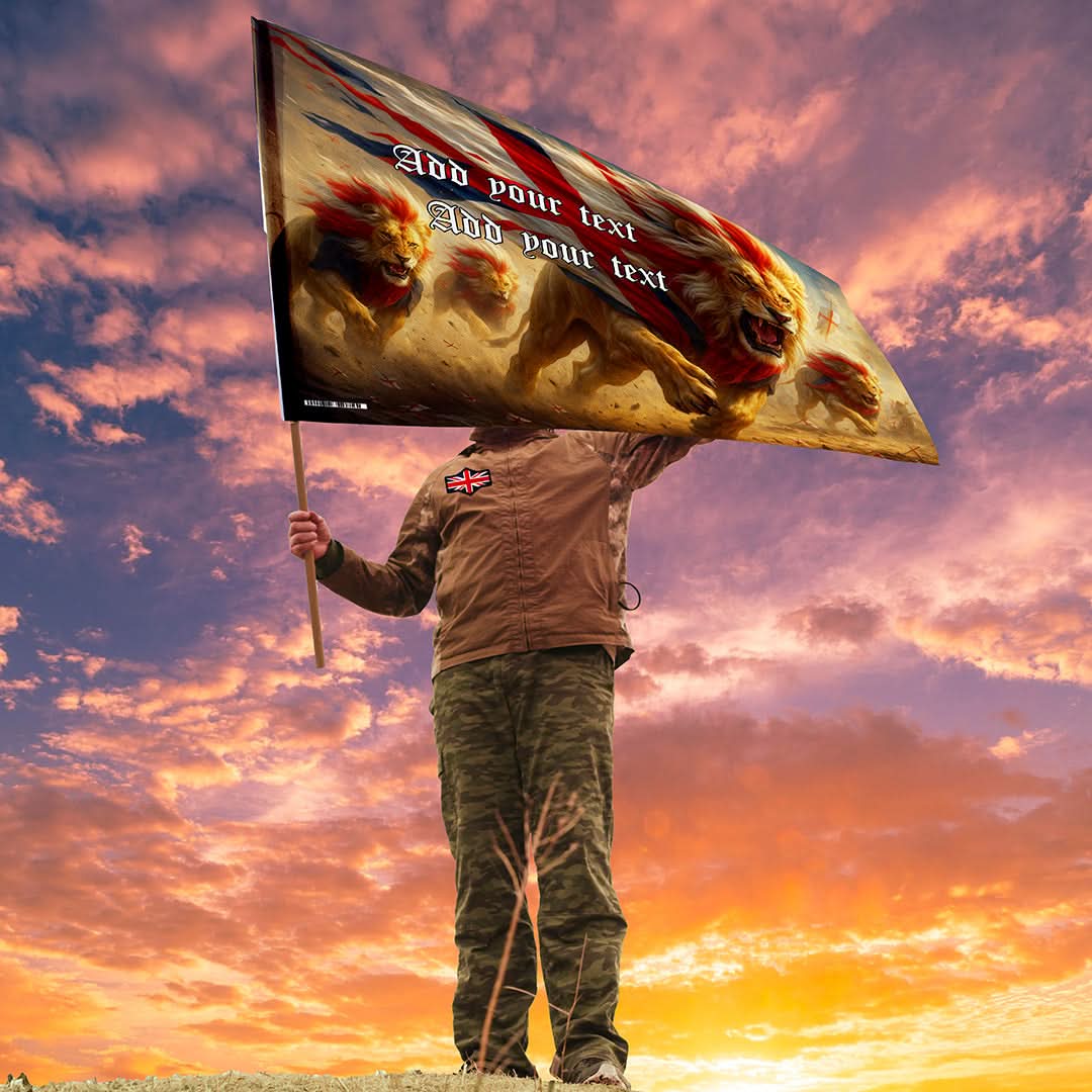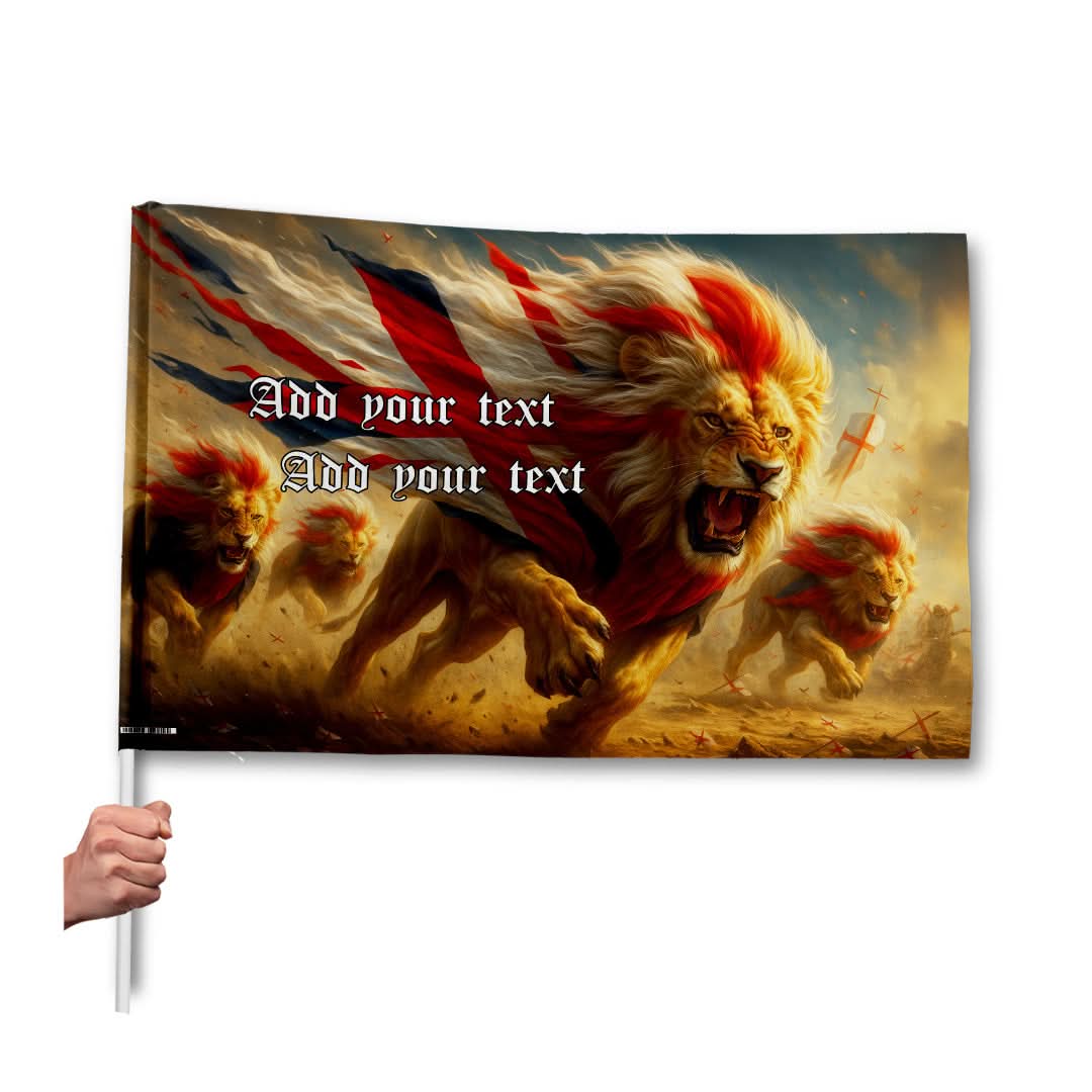 Fierce Lions, England Flag with sleeve - Add Text - 4 Sizes!