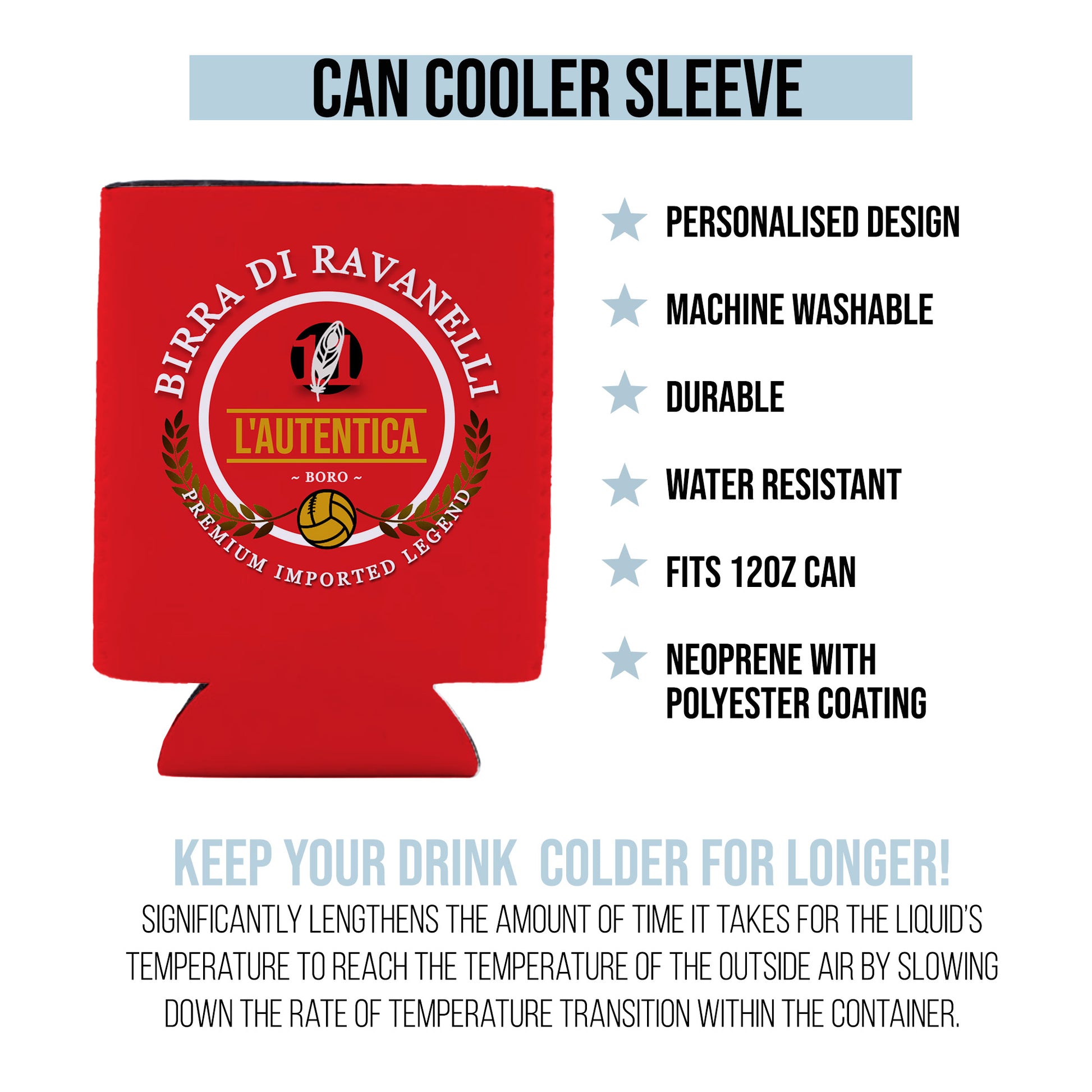 Crafted from high-quality, durable materials, this can cooler ensures your favourite beverages stay ice-cold for longer, keeping you refreshed throughout the match or any social gathering. The sturdy construction guarantees longevity, making it the perfect companion for countless game days and celebrations to come.