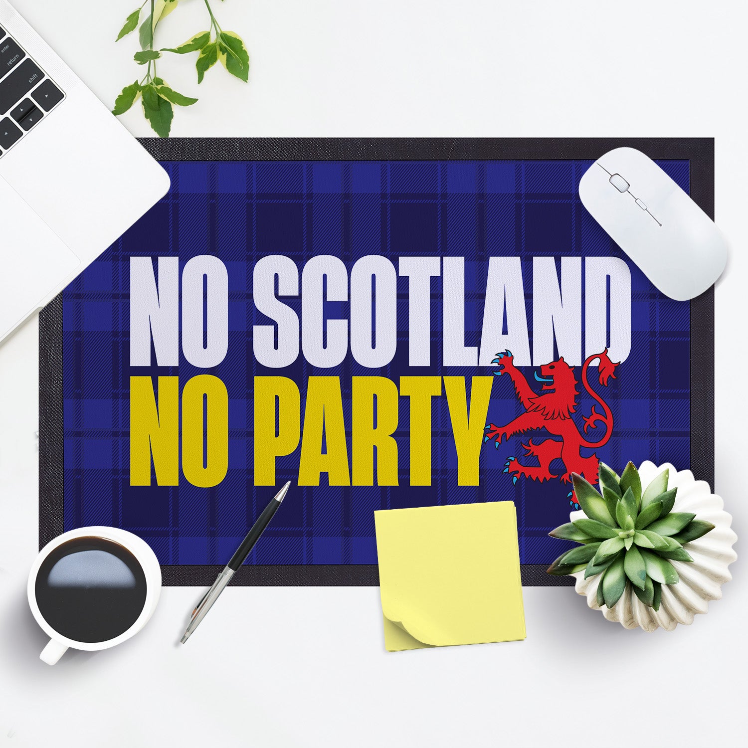 No Scotland No Party - Blue Tartan - Door Mat - 60cm x 40cm